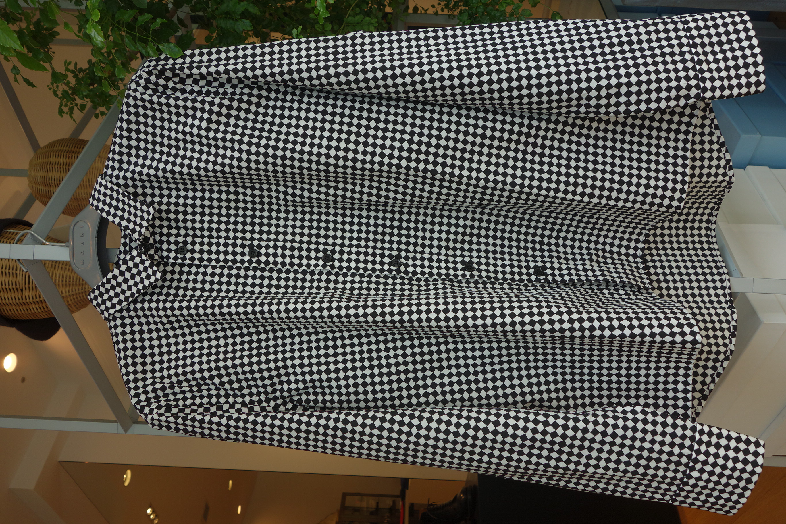 スッキリとしたシルエットにチェック柄のインパクトが見事にマッチします。