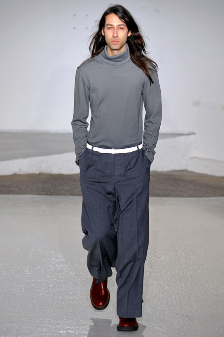 シャツやプルオーバーのインナーとして、スタイルのアクセントにしたラフシモンズ。