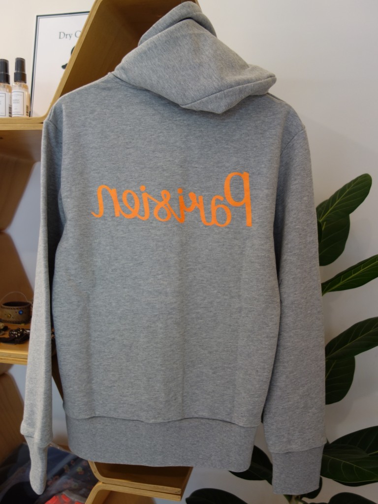 背中のParisienのロゴがポイントです! ちなみにこちら、ロゴが逆向きに描かれているバージョンです。